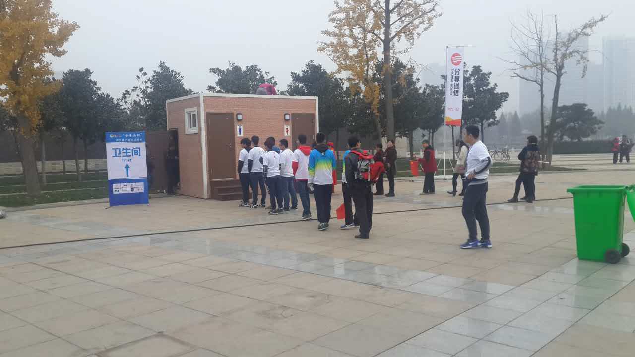 山東臨沂國際馬拉松比賽使用我公司生產(chǎn)的內(nèi)循環(huán)沖水式衛(wèi)生間